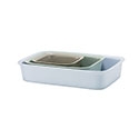 Conjunto de três assadeiras resistentes ao calor. Cores apelativas que combinadas podem ajudá-lo a preparar pratos especiais para ocasiões especiais. Pode usar para pequenas entradas e para pratos principais como por exemplo, uma bela lasanha.