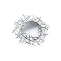 Relógio de parede em aço inoxidável 18/10 brilhante. As formas irregulares da face do relógio hexagonal e as peças circundantes criam espaços e geram efeitos de luz e sombra que adicionam magia e dinamismo ao objeto.